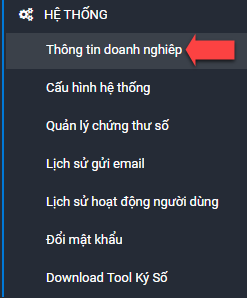 Sau khi đăng nhập vào hệ thống, tại Dashboard quý khách di chuyển tới phần HỆ THỐNG > Thông tin doanh nghiệp để xem lại thông tin sau khi đăng ký tài khoản