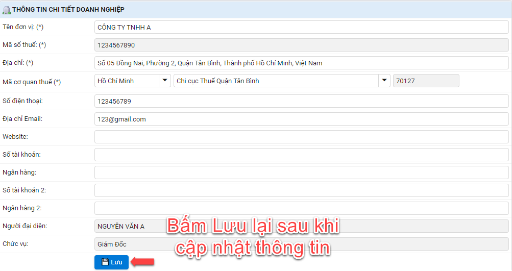 Sau khi chỉnh sửa xong quý khách bấm vào nút Lưu bên gốc dưới để hệ thống cập nhật.